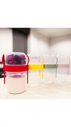- Özellikle diyet yaparken hafif ve doyurucu atıştırmalıkların tüketilmesi gerektiği zamanlarda çeşitli meyveler, yulaf ve yoğurt birlikteliği ile hazırladığınız ara öğünlerinizi muhafaza edebileceğiniz kapaklı ve kaşık haznesi olan yoğurt kabıdır.